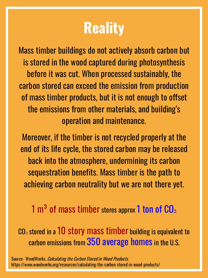 Mass timber, an emerging technology in sustainable construction, is transforming climate-conscious design. It includes engineered wood products like cross-laminated timber (CLT) and glulam. These are made by bonding smaller pieces of wood together resulting in high-strength, durable structural elements. Along with its exceptional performance, mass timber stands out for its ability to significantly reduce greenhouse gas emissions, making it a highly sustainable choice.